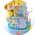 2. Полотенца, банные принадлежности и конверт для купания. Малышей в первый месяц жизни купают в специальном конверте, который защищает нежное тельце и головку с мягкими темечками от воздействия агрессивной среды – теплой воды. Подарите подруге все, что может пригодиться ее драгоценному сыночку в ванной: полотенца, присыпочки, масла для массажа, ножнички, игрушки, мочалки, мыло. И обязательно придумайте для такого огромного подарка оригинальную подачу!