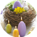 ну а вечером, в загадочном сиянии вот таких, стилизованных свечей, говорить долго-долго о любви, закрепив слова подарком в виде «яичного» флакончика цветочных духов или милого золотого гнездышка с голубыми аметистовыми яйцами посерединке.
