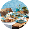 Сочетание ярких, летних красок на праздничном столе, и предметах, которые его окружают, позволяет обеспечить прилив позитивной энергии к мозгу, телу, душе. Благодаря сочетанию пурпурного, голубого, персикового, розового, желтого, нежно-зеленого, к «пациенту» начинает постепенно возвращаться вкус к жизни, радость от мира, что его окружает.