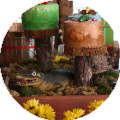 Интересно будет применить в праздничном интерьере дерево. Например, ветки, в качестве крепежа для поздравительного баннера с именем виновника торжества,или маленькие пни – подставки (тарелки) для угощений. Уместны также живые цветы (с желтыми, белыми соцветиями) и мягкие игрушки-звери (крокодилы, бегемоты, змеи и пр.).
