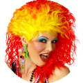Макияж тоже должен быть яркий, вечерний, фантазийный. Допускаются рисунки на лице и использование длинных накладных ресниц, аппликаций и пр.