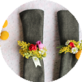Но сегодня мы предлагаем более сложный вариант держателей, чем просто завязанные ленты. Это отличный мастер-класс о том, как сделать кольца для салфеток своими руками из живых цветов.