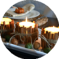Что я люблю больше всего, так это палочки корицы в виде подсвечников – они такие ароматные. Сделать такие подсвечники не составит труда. Берем палочки корицы, выстраиваем их вокруг свечи и туго связываем жгутом. Совет: свечи для такого варианта подбирайте по размеру палочки.