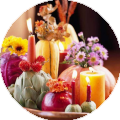 Свечи - используются во многих культурах, как символ начала праздничного сезона. Привлекательный медовый цвет восковых свечей идеально вписывается в осеннюю композицию. А если их украсить сушенными апельсиновыми дольками или окутать в листья, цветы, веточки и ягоды, то прекрасно дополнят праздничное украшение дома.