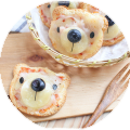Из кусочков хлеба для тостов вырезаем мордочки мишек. Сделать это можно с помощью специальной формочки или из бумажного трафарета, который легко изготовить самостоятельно. И поджарить вырезанный хлеб с обеих сторон в духовке либо в тостере.