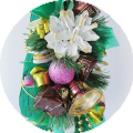 Чтобы декор получился красивый, обратите внимание на сочетание цветов конфетных фантиков, ленты и новогодние украшения – они должны гармонировать.